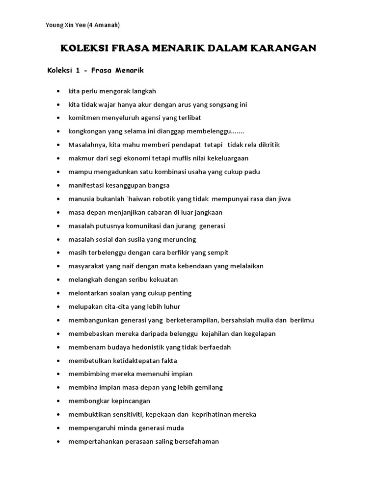 Frasa Menarik Yang Boleh Digunakan Untuk Menulis Karangan Pdf